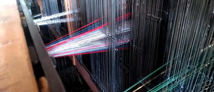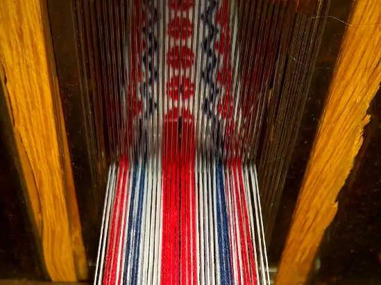 Vor dem Weben muß der Bandstuhl vorgerichtet werden, die